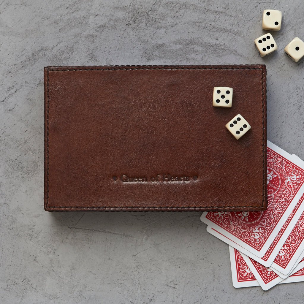 Presented in a leather box designed with sections for the playing card and the dice. Included are two sets of Bicycle playing cards and six 16mm squared white dice. For more traditional games see our full collection here.